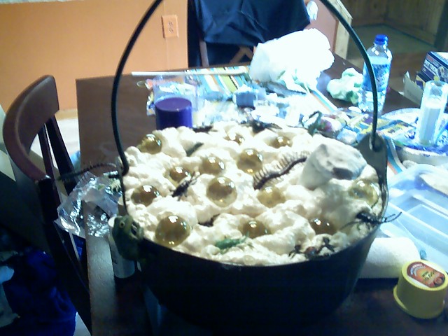 5 - The snake yellow and black to contrast. Also dont worry if you get paint on the cauldron or the bugs since it is supposed to be bubbling over.